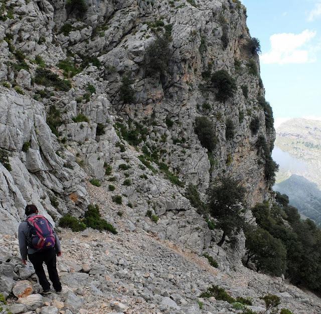 Reprenem la ruta per la llarga rosseguera. Cal agafar-s'ho amb calma i atracar-se a la paret de la dreta.