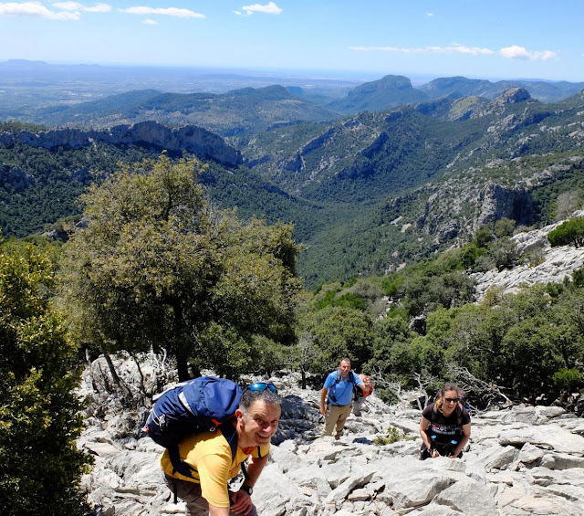Terreny d'esqueis, summament esquerp, ple de crivells i cantells tallants com a ganivets per on anam avançant. L'erosió de la roca calcària crea aquest relleu de mala petja.